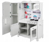 Кухня не имеет острых краев, изготовлена из дерева (за исключением мелких пластиковых деталей - ручек). Все элементы кухни окрашены безопасными для детей, экологичными красками.